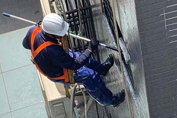 吊籃作業:透過吊籃設備,能穩定清洗大面積外牆,常見於大型商辦或飯店建築。